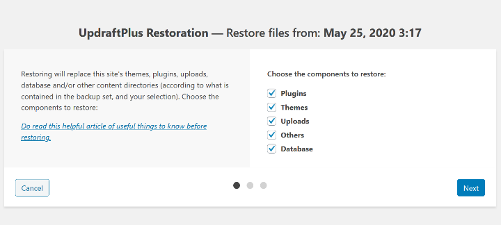 اگر نیاز به بازیابی از یکی از نسخه های پشتیبان خود دارید، UpdraftPlus این کار را آسان می کند.