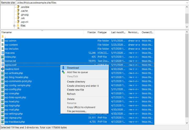 از آن جا، تمام پرونده های سایت خود را در رایانه محلی خود بارگیری کنید: