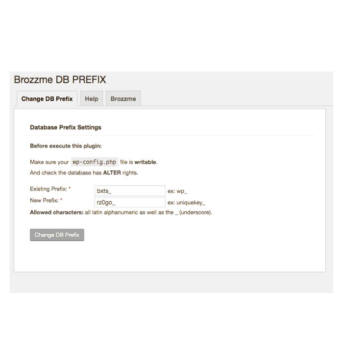 افزونه‌های رایگان و پولی زیادی برای تغییر پیشوند جداول وردپرس وجود دارد تا شما در کمتر از چند دقیقه، ویرایش‌های لازم را انجام دهید. افزونه‌های رایگان که شامل Brozzme DB Prefix & Tools Addons است را دانلود کنید و سپس پیشوند قبلی و جدید را بدون اینکه تنظیمات آن را تغییر دهید در کادر مربوطه وارد کنید.